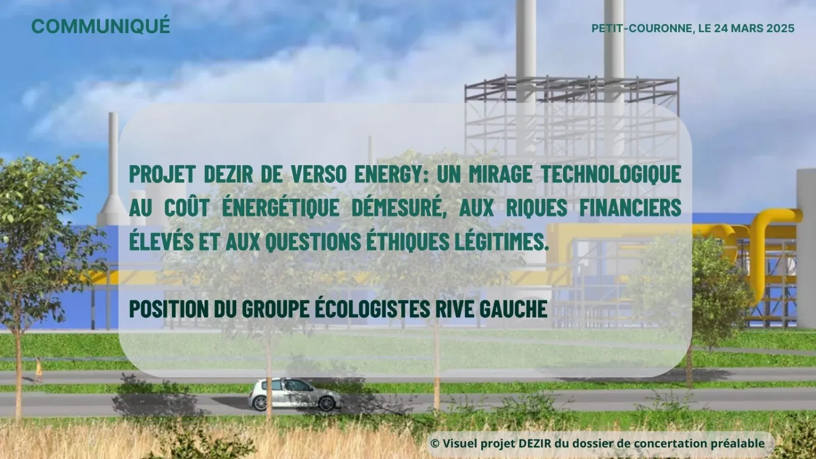 Projet DEZir de Verso Energy: un mirage technologique au coût énergétique démesuré, aux riques financiers élevés et aux questions éthiques légitimes. Position du Groupe Écologistes Rive Gauche