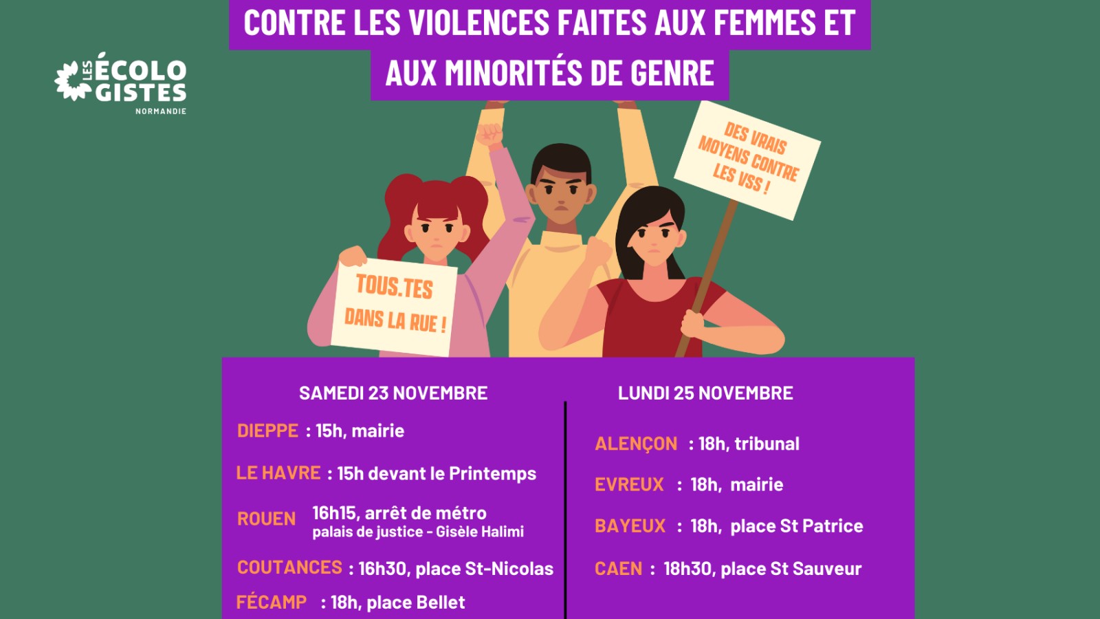 23 et 25 novembre : mobilisons nous partout en Normandie contre les violences faites aux femmes et aux minorités de genre